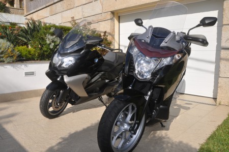 Dois motards com duas meninas distintas, mas que se dão muito bem: Honda Integra 700 DCT e BMW C - 650 GT.